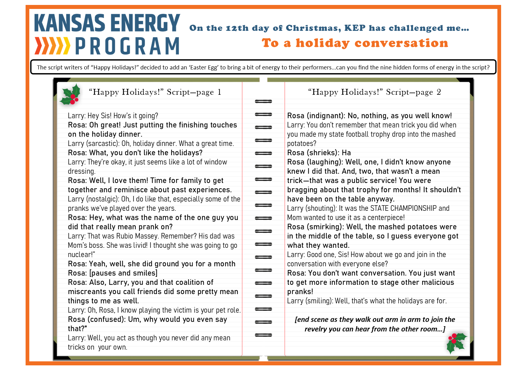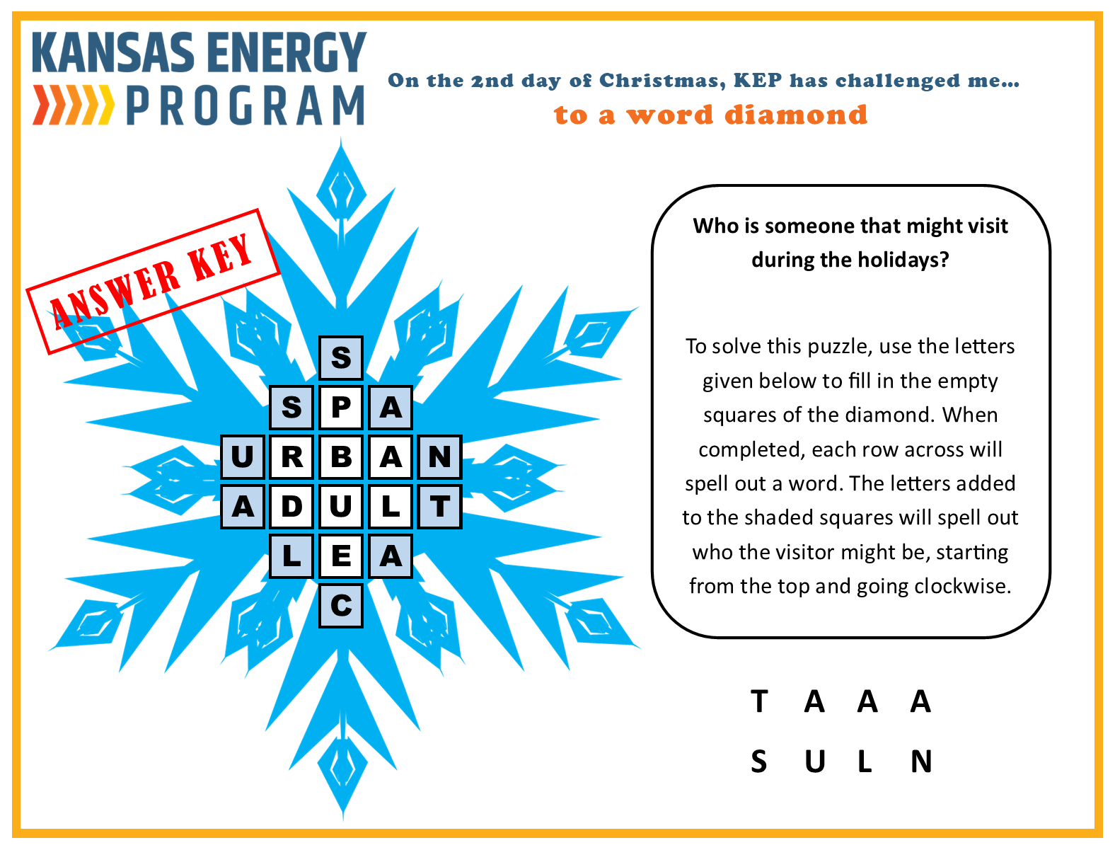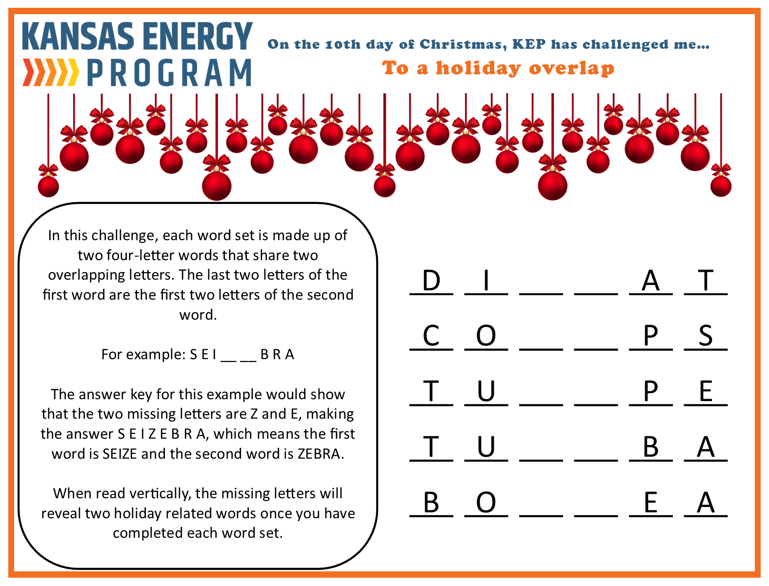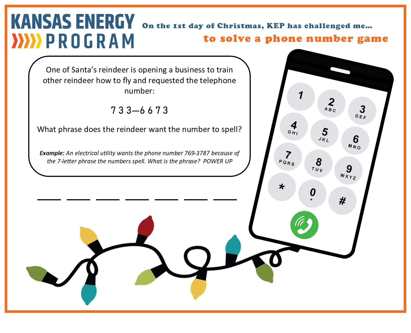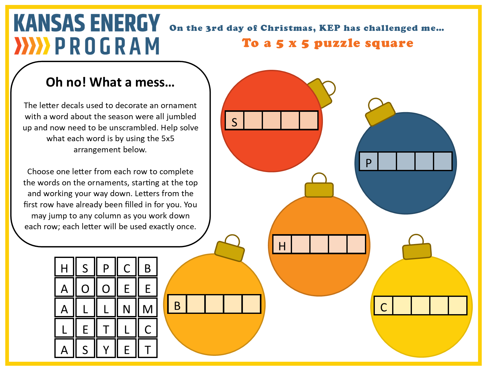 The Kansas Energy Program has put together several riddles, games, and brain teasers all focused on energy. Take a look below. Give us a shout to let us know what you think or if you have ideas for new ones.